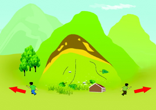3、如遭遇泥石流,要立即选择与泥石流垂直的方向沿两侧山坡往上爬,爬得越快越高越安全。切记不要顺泥石流方向往下跑。