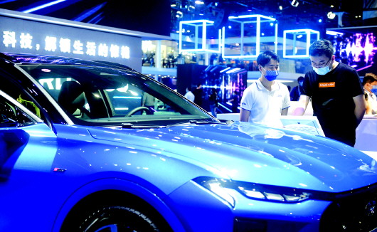 11月19日,观众在广州车展上参观。当日,2021第19届广州国际汽车展览会在位于广州的中国进出口商品交易会展馆拉开帷幕,吸引了国内外众多汽车厂商和汽车零部件厂商参展。展会将持续至本月28日。 新华社记者 卢汉欣 摄