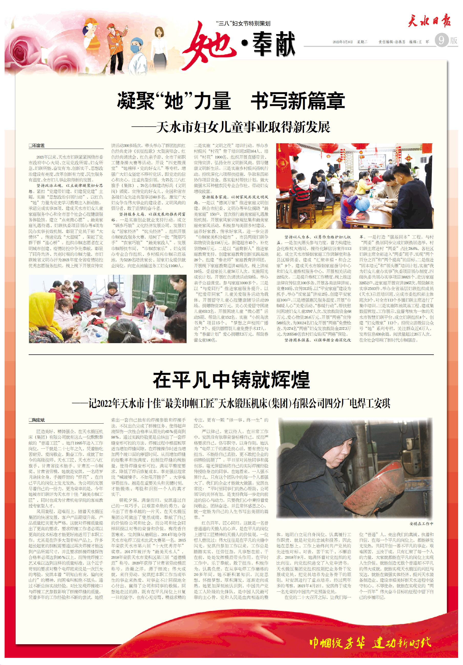 ——记2022年天水市十佳“最美巾帼工匠”天水锻压机床(集团)有限公司四分厂电焊工安琪
