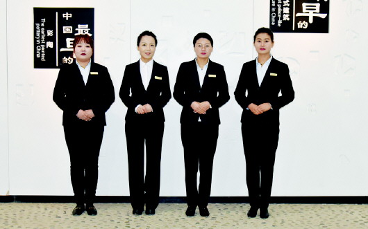 多年来,全部由女性组成的大地湾博物馆讲解员团队致力于大地湾文化的传承和发扬,4名专业讲解人员每年提供讲解服务近2000场次。2020年,甘肃大地湾文物保护研究所所长赵志雄对博物馆讲解员提出更高要求:讲解员是沟通博物馆与社会观众的桥梁和纽带,是文化的传播者,要培养优秀讲解员队伍,为游客提供一流的讲解服务。近两年来,大地湾博物馆全面强化业务培训,狠抓讲解队伍建设,讲解员充分灵活地运用好讲解方法、技巧,不断提升讲解服务质量,深入开展特色讲解服务,受到了观众和社会各界的好评。