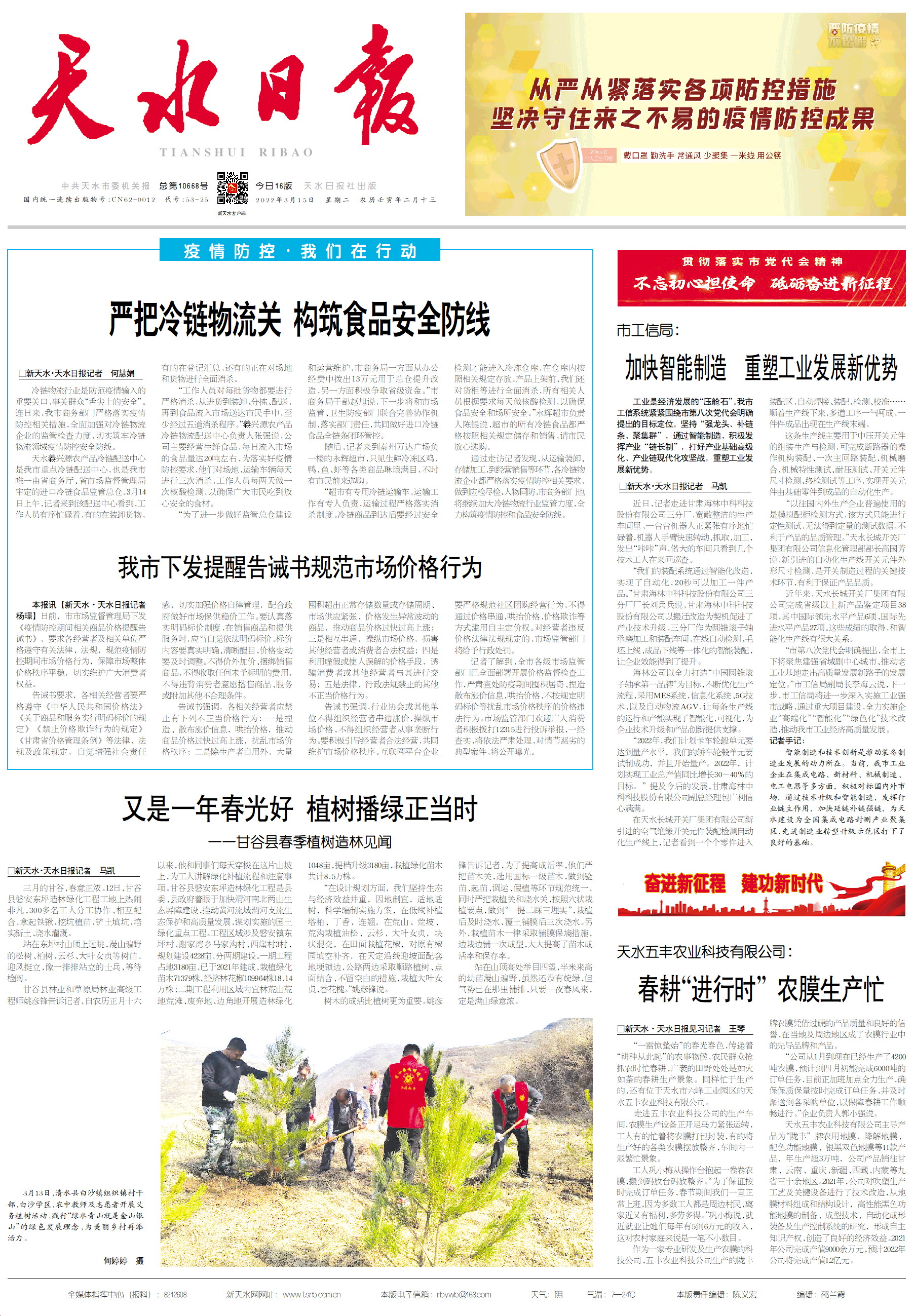 新闻 时间:2022年03月15日 来源:天水日报