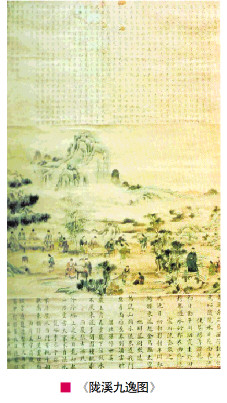“陇溪九逸”每逢集会,必悬此图。他们继承中国文人优良的传统美德,“居庙堂之高则忧其民,处江湖之远则忧其君”,看似醉情山水,实则壮心不已,制订乡约,设馆授徒,为家乡的文化教育事业发挥着余热。从这个意义上说,明代秦安“陇溪九逸”正是古代知识分子忧国忧民的一个缩影,亦是那个时代的一抹春色。