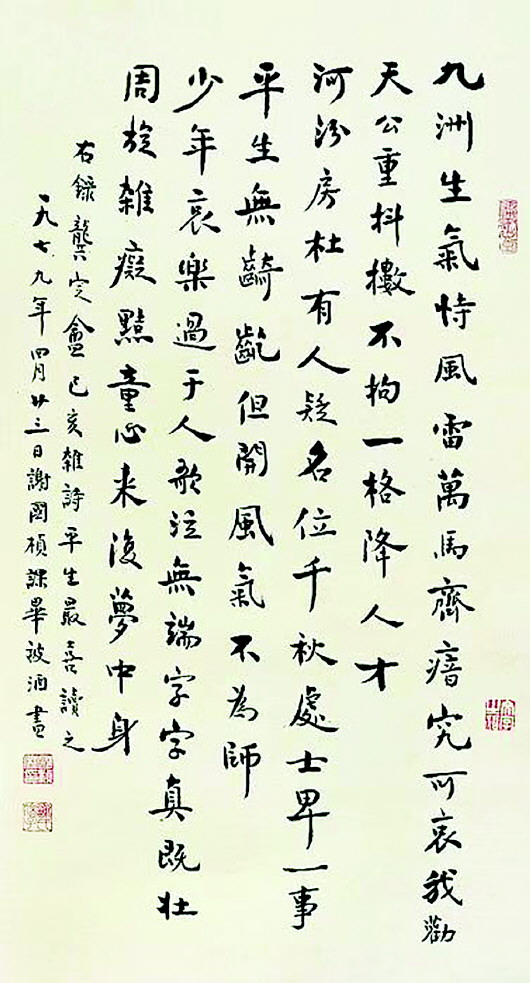 人们喜欢谢国桢的书法,也许延伸出来的更是对他人品的尊重和认可。1982年谢国桢有病住院,仍坚持看书不辍,强支病体校订英国剑桥《百科全书》有关南明史的中译稿。他铭记着清华园中梁启超先生所说的:“战士死于沙场,学者死于讲坛。”别人劝他休息,他却说:“师训不可违!”他因发高烧而几经昏迷,但稍微好转即又投入到读书工作中,后终因劳累过度,病情恶化,溘然长逝。