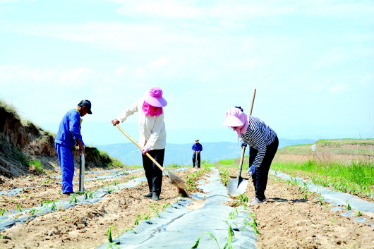 近日,村民在清水县郭川镇马庙梁千亩万寿菊种植示范点栽种万寿菊。该镇因地制宜优化产业结构,大力发展万寿菊产业,拓宽了群众增收致富渠道。该示范点分两个区域种植万寿菊1119亩,由高湾、宋川、卦丹、赵那、郭山、田川、马蹄7村和4个合作社负责种植。