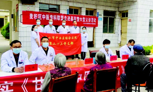 5月24日至25日,麦积区中医医院(市二院南院区)第二十三党支部组织该院内科、外科、针灸推拿科、风湿病科、骨伤科等7个科室近15名专家组成义诊医疗队,深入麦积区三岔镇、新阳镇举行“服务家乡人”义诊活动,同时推广中医适宜技术。