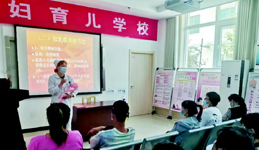 妇产科医护人员在该中心孕妇育儿学校开展母乳喂养知识讲座,内容主要包括母乳喂养的好处、母乳喂养的姿势以及产褥期妇女康复、新生儿护理等。通过讲座,让产妇及家属更深层次的了解母乳喂养的重要性,推进家庭共同承担母乳喂养的责任。