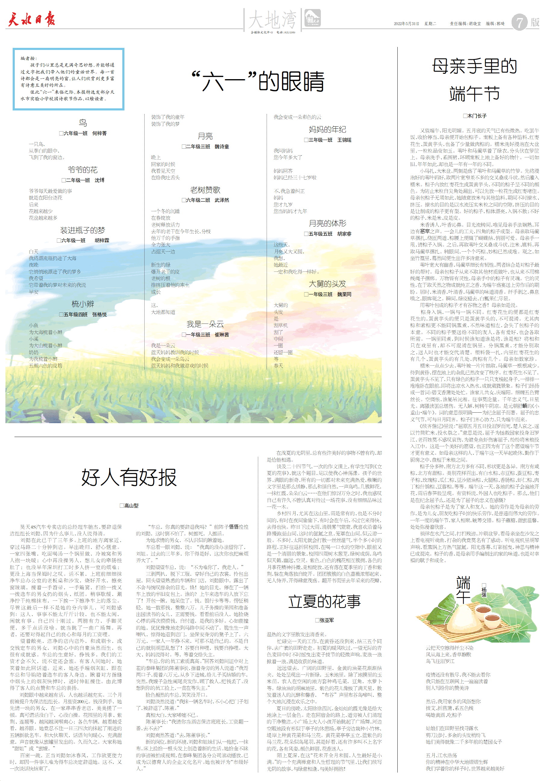 值此“六一”来临之际,本报特选发部分天水市实验小学校园诗歌节作品,以飨读者。
