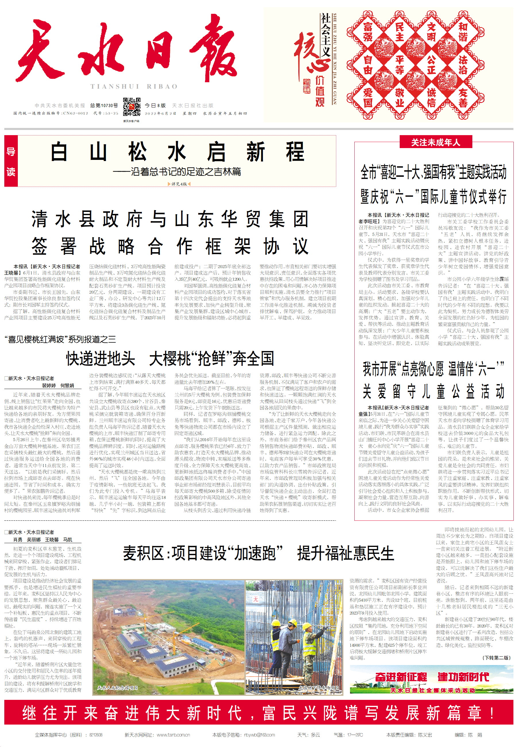 本报讯【新天水·天水日报记者李旺旺】为喜迎党的二十大胜利召开和庆祝第72个“六一”国际儿童节,5月31日,天水市“喜迎二十大、强国有我”主题实践活动暨庆祝“六一”国际儿童节仪式在市公园小学举行。