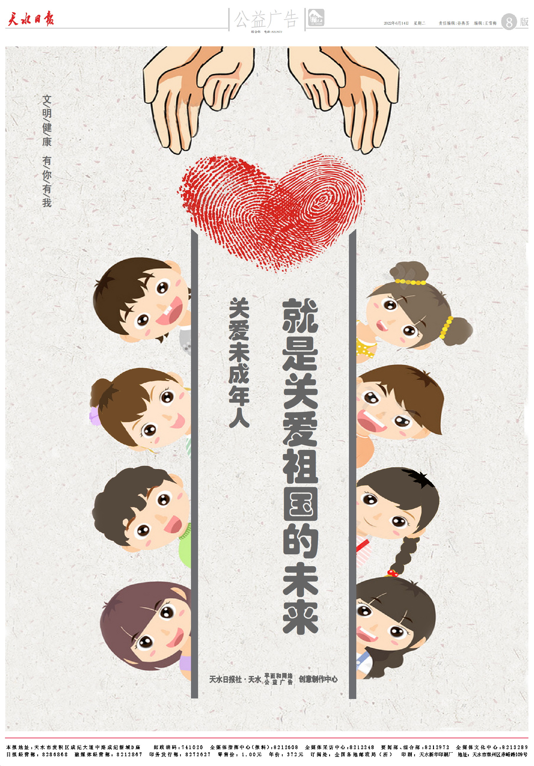日报经营部:8286868 融媒体经营部:8212867 印务发行部:8272627 零售价:1.00元 年价:372元 订阅处:全国各地邮政局(所) 印刷:天水新华印刷厂 地址:天水市秦州区赤峪路109号