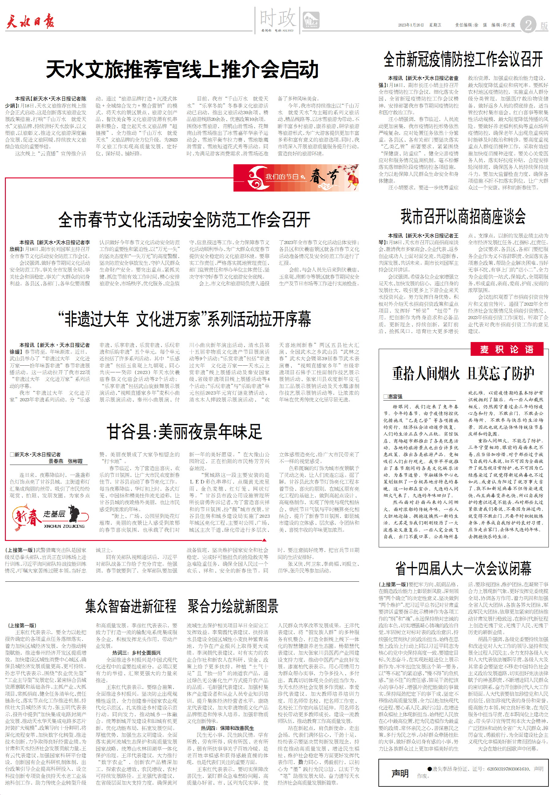 本报讯【新天水·天水日报记者李欣桐】1月18日,副市长刘国军主持召开全市春节文化活动安全防范工作会议。