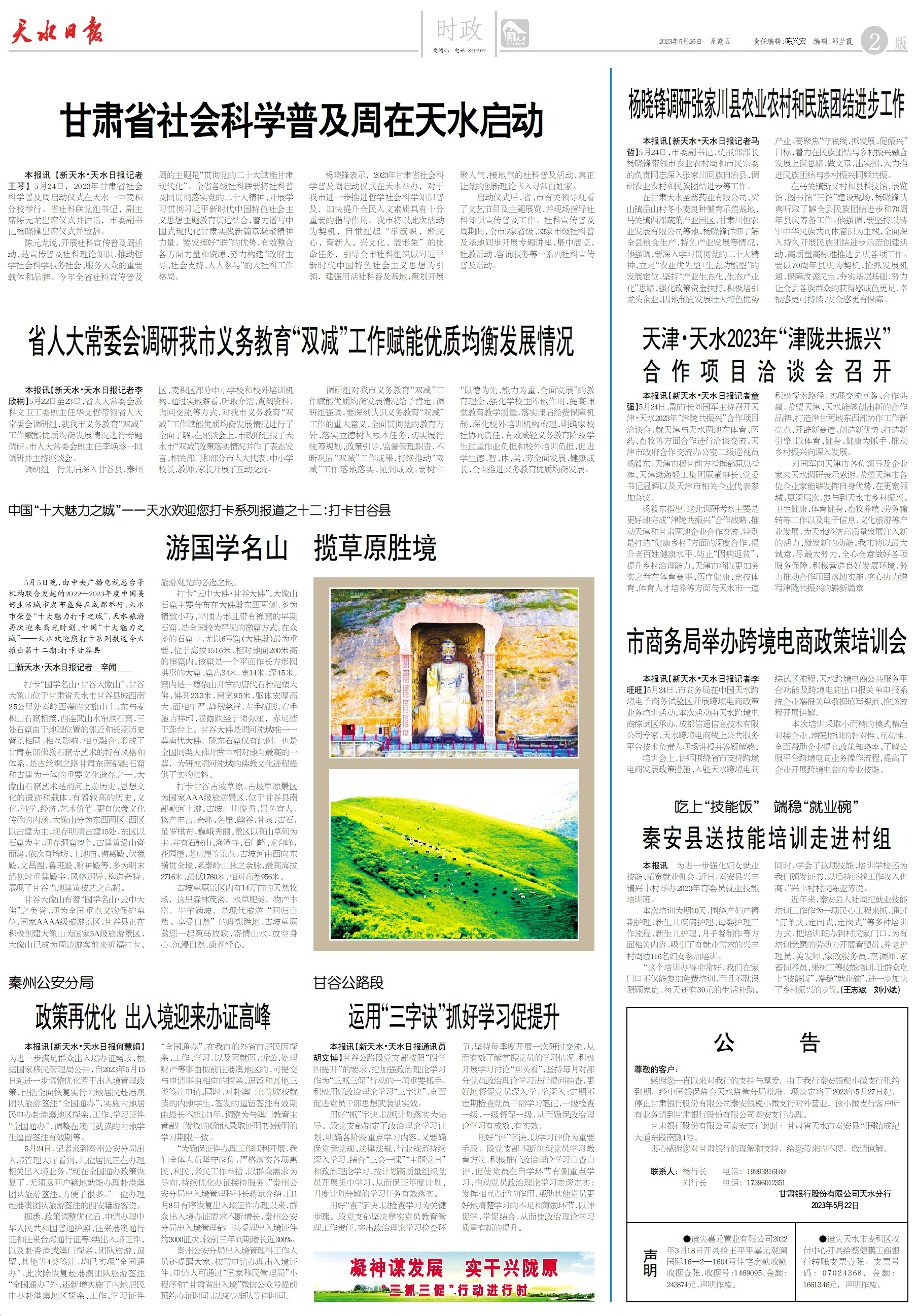 新闻 时间:2023年05月26日 来源:天水日报