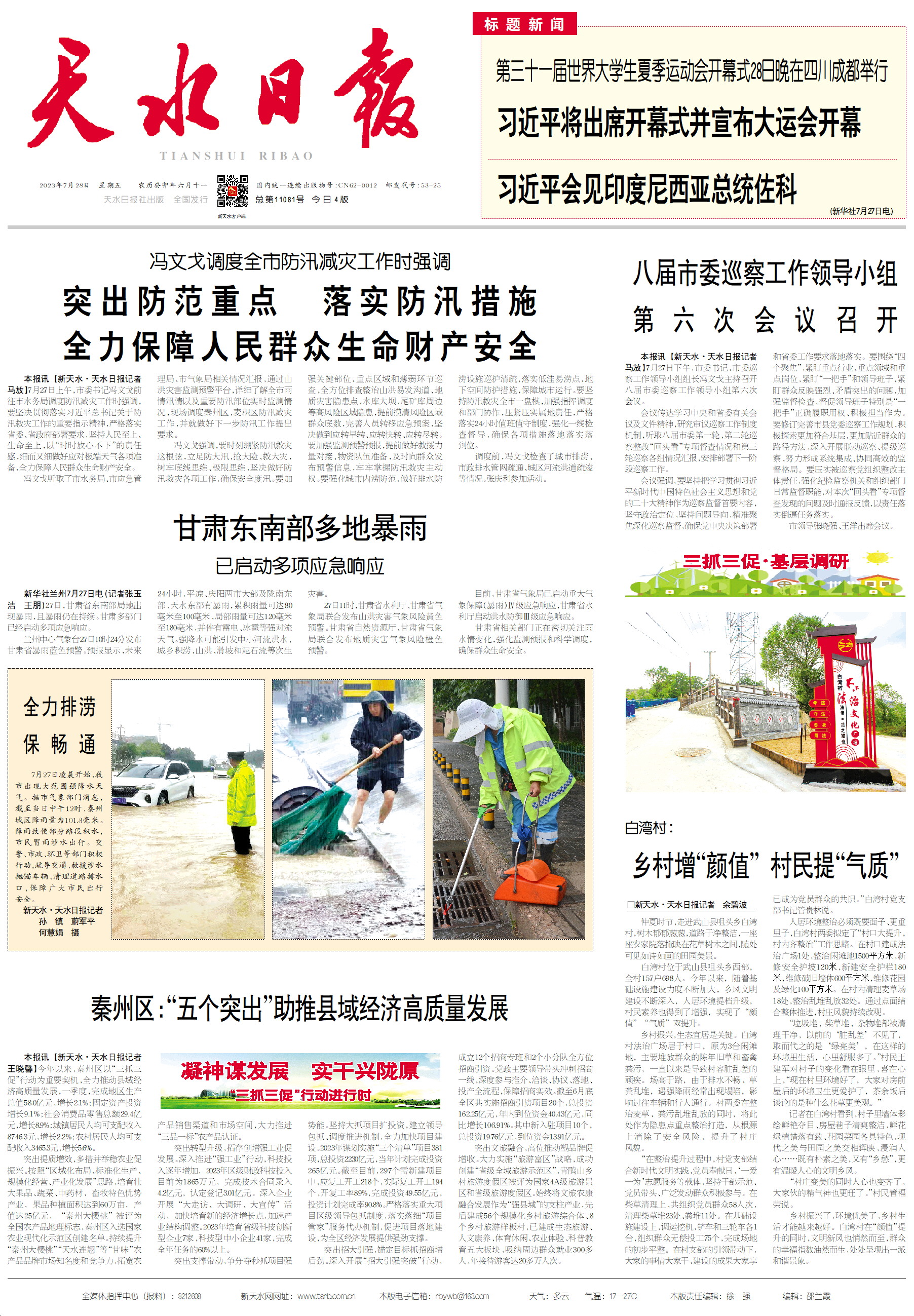 新华社兰州7月27日电(记者张玉洁 王朋)27日,甘肃省东南部局地出现暴雨,且暴雨仍在持续。甘肃多部门已经启动多项应急响应。