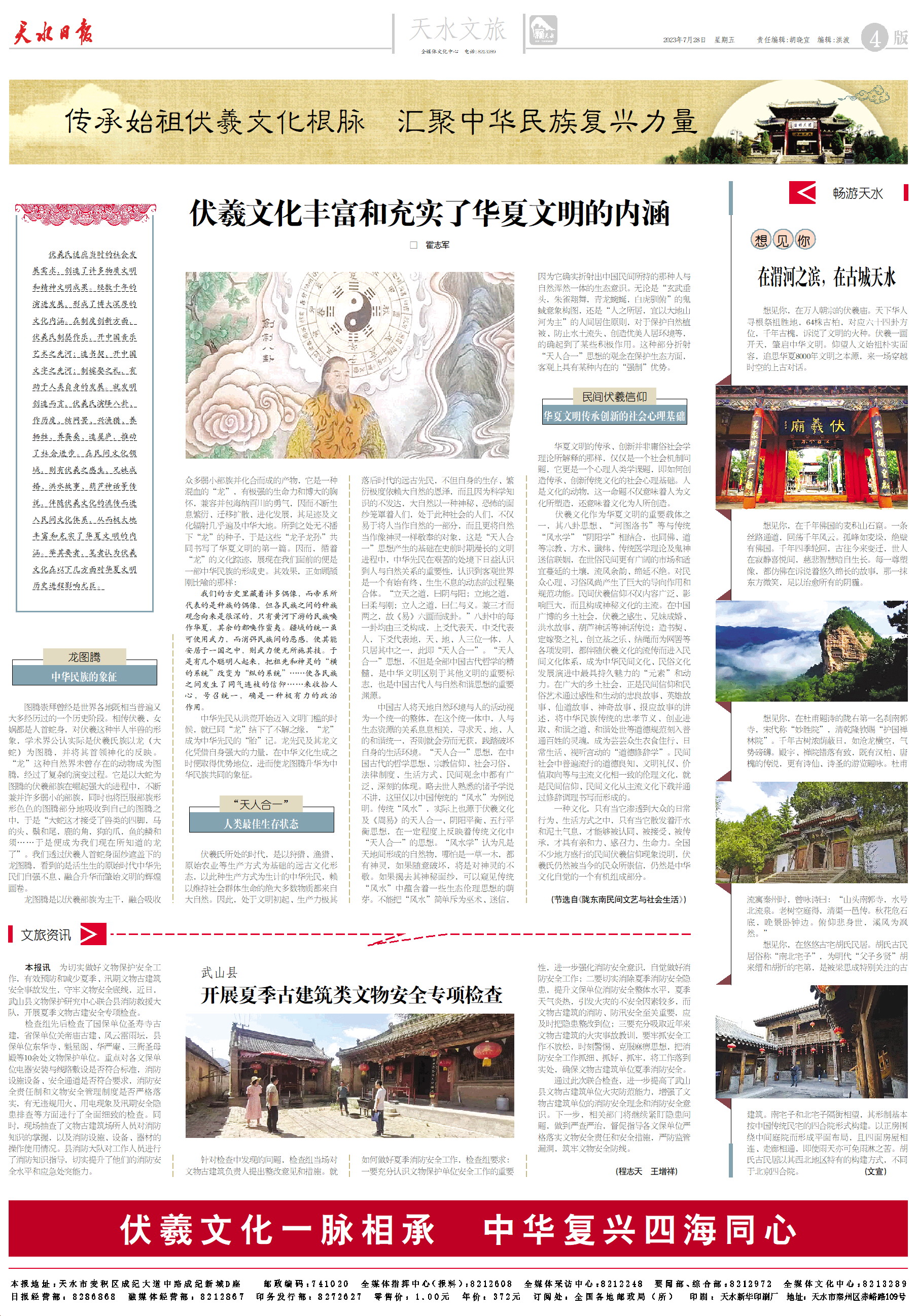 想见你,在万人朝宗的伏羲庙。天下华人寻根祭祖胜地,64株古柏,对应六十四卦方位,千年古槐,诉说了文明的火种。伏羲一画开天,肇启中华文明。仰望人文始祖朴实面容,追思华夏8000年文明之本源,来一场穿越时空的上古对话。