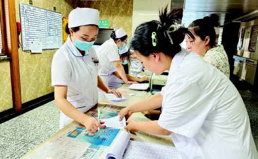“床旁入院+结算”服务模式是指患者入院时可直接在病区办理入院手续和医保登记,住院期间可通过自助机、支付宝小程序、微信公众号、银联卡、现金等方式办理缴费,出院时病区办理完成全部的结算工作,实现了入院出院病区一站式服务,有效缓解了出入院高峰期结算窗口排长队现象,极大提升了患者及家属的就医满意度。 郭嘉祥 摄