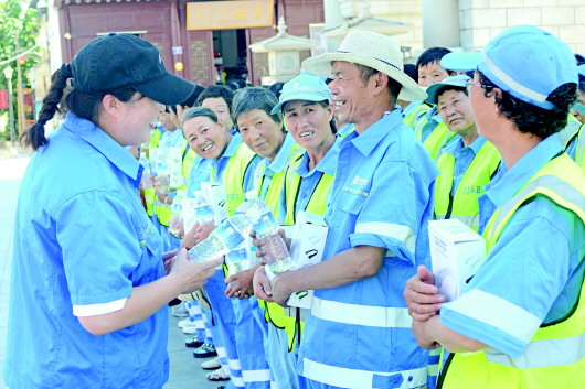 为了预防劳动者中暑,入夏以来,天水市各级各部门为坚守在一线的劳动者送去便携风扇、饮用水等防暑降温用品,为其送上清凉和关爱,致敬在高温下仍然坚守的他们,在这个炎夏,充满爱的双向奔赴真情上演。