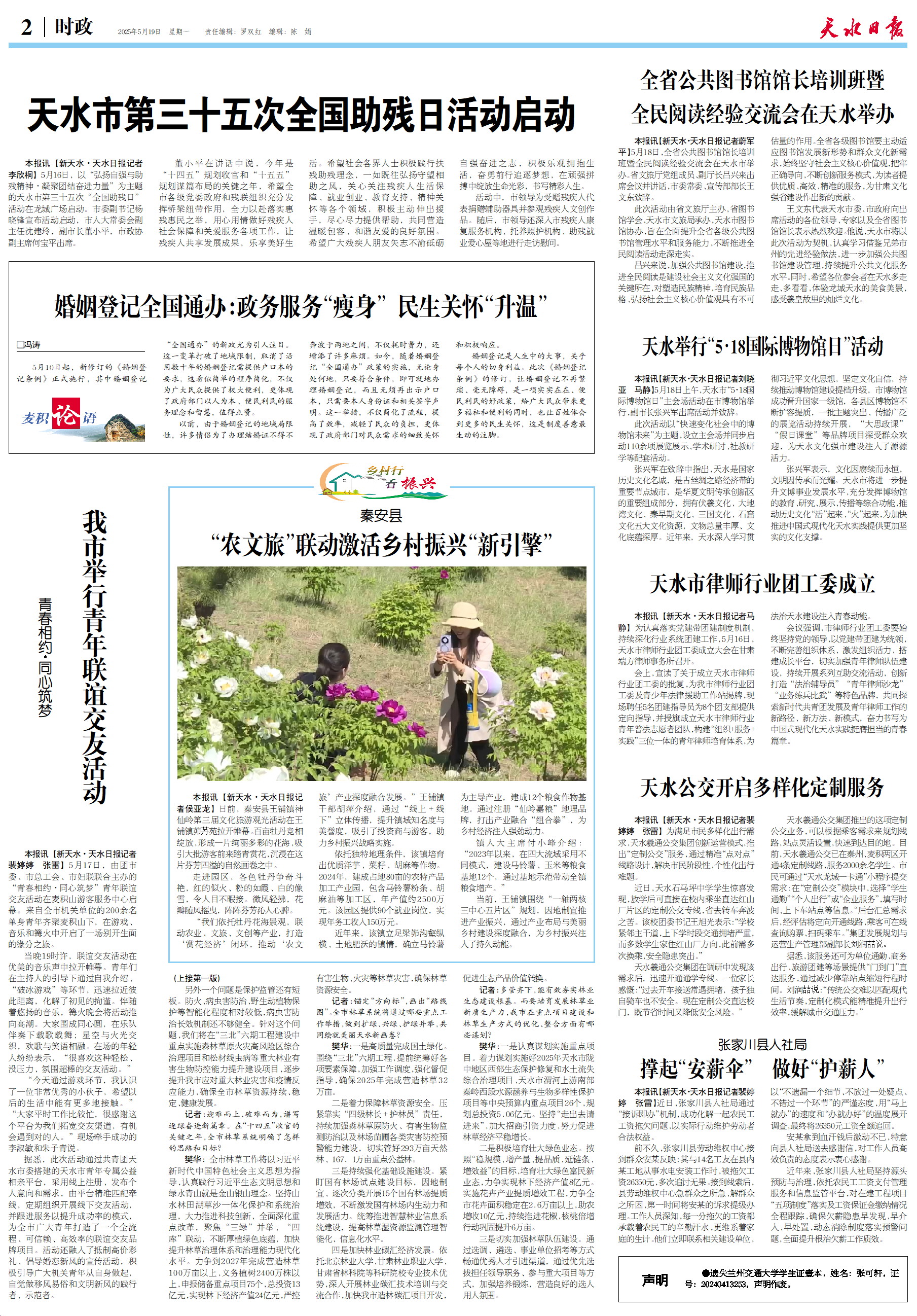 新闻 时间:2025年05月19日 来源:天水日报