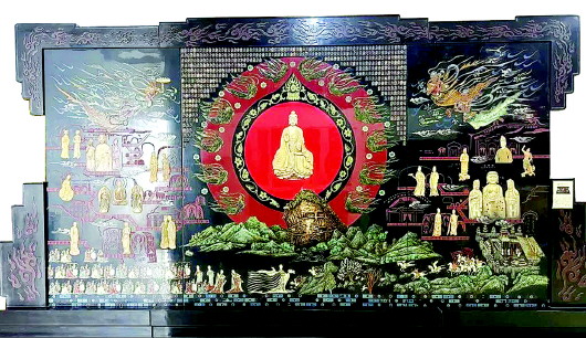 面对时代挑战,飞天雕漆以创新延续古老技艺的血脉。近三年攻克“起花磨显工艺应用”等10余项省市科研项目,成功研发彩色推光漆技术,斩获6项省级工艺美术大奖。国家级传承人张国栋领衔创作的巨幅漆艺《麦积瑰宝》,融合石刻、堆塑等技法,耗时一年再现麦积山石窟艺术精髓,成为当代漆艺里程碑。