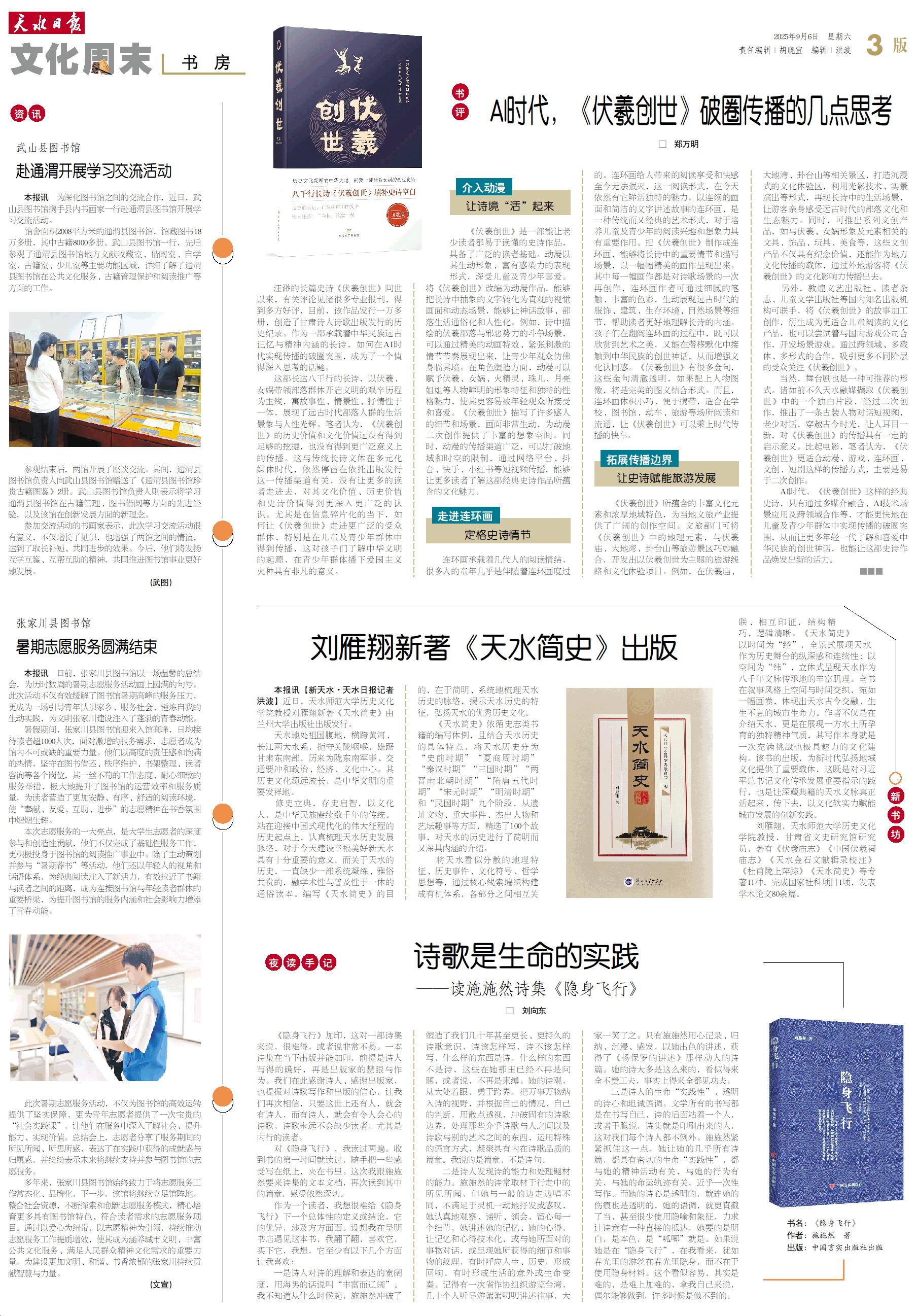 将天水看似分散的地理特征、历史事件、文化符号、哲学思想等,通过核心线索编织构建成有机体系,各部分之间相互关联、相互印证,结构精巧,逻辑清晰。《天水简史》以时间为“经”,全景式展现天水作为历史舞台的纵深感和连续性;以空间为“纬”,立体式呈现天水作为八千年文脉传承地的丰富肌理。全书在叙事风格上空间与时间交织,宛如一幅画卷,体现出天水古今交融、生生不息的城市生命力。作者不仅是在介绍天水,更是在展现一方水土所孕育的独特精神气质,其写作本身就是一次充满挑战也极具魅力的文化建构。该书的出版,为新时代弘扬地域文化提供了重要载体,这既是对习近平总书记文化传承发展重要指示的践行,也是让深藏典籍的天水文脉真正活起来、传下去,以文化软实力赋能城市发展的创新实践。