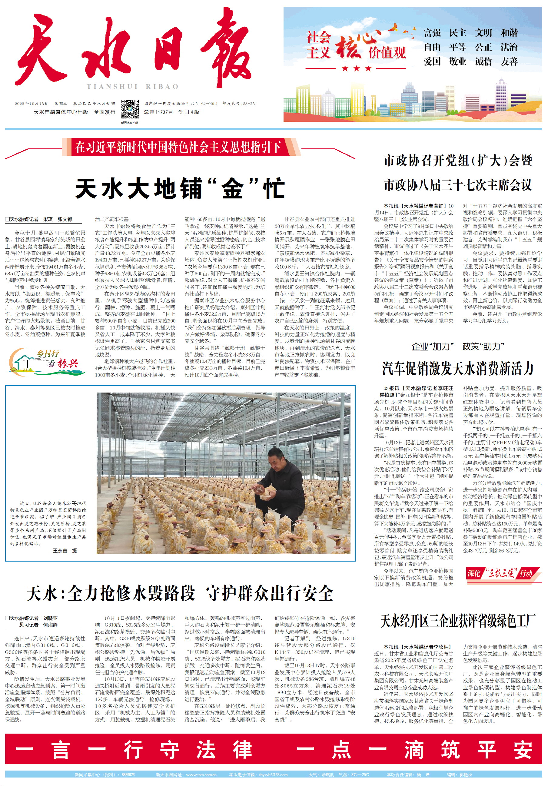 新闻 时间:2025年10月15日 来源:天水日报