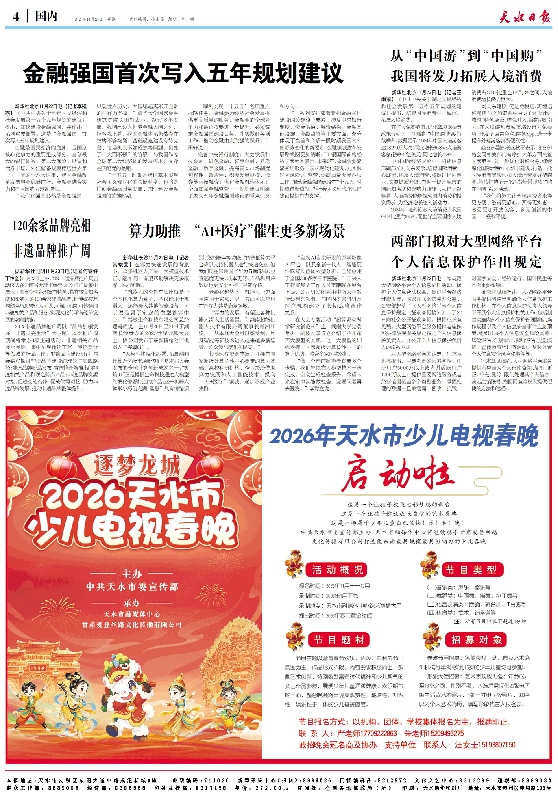 新闻 时间:2025年11月24日 来源:天水日报