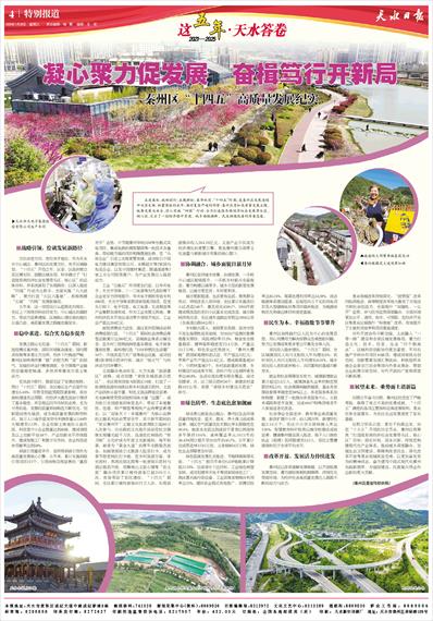 五度春秋,砥砺前行;五载耕耘,春华秋实。“十四五”时期,是秦州区发展进程中攻坚克难、积蓄势能的五年。面对复杂严峻的形势,秦州区紧扣高质量发展主题,统筹发展与安全,深入实施“四强”行动,全力打造陇东南经济社会发展带头区、核心区,交出了一份经济稳中有进、城乡面貌换新、民生持续改善的厚重答卷。