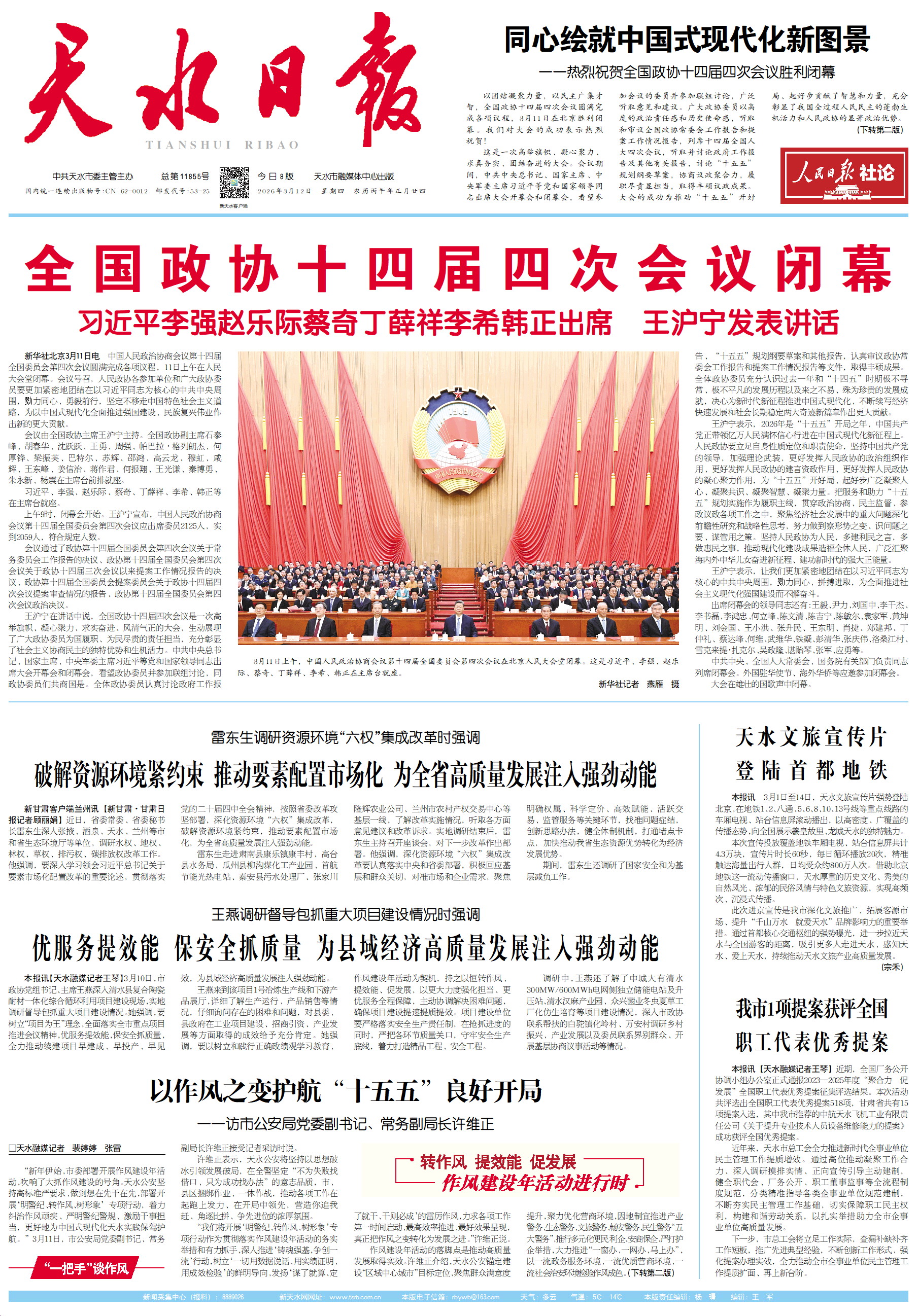 新闻 时间:2026年03月12日 来源:天水日报