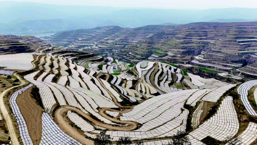 近日,武山县马力镇远中村万亩粮饲兼用玉米示范基地覆膜梯田错落有致。昔日高寒干旱撂荒地,经十年整治深耕,变身优质“粮仓田”。目前马力镇已建成2.4万亩和5000亩玉米种植基地各一个,总面积达3.8万余亩,持续推动“望天田”变身“高产田”,打造出山区农业现代化转型示范样板。