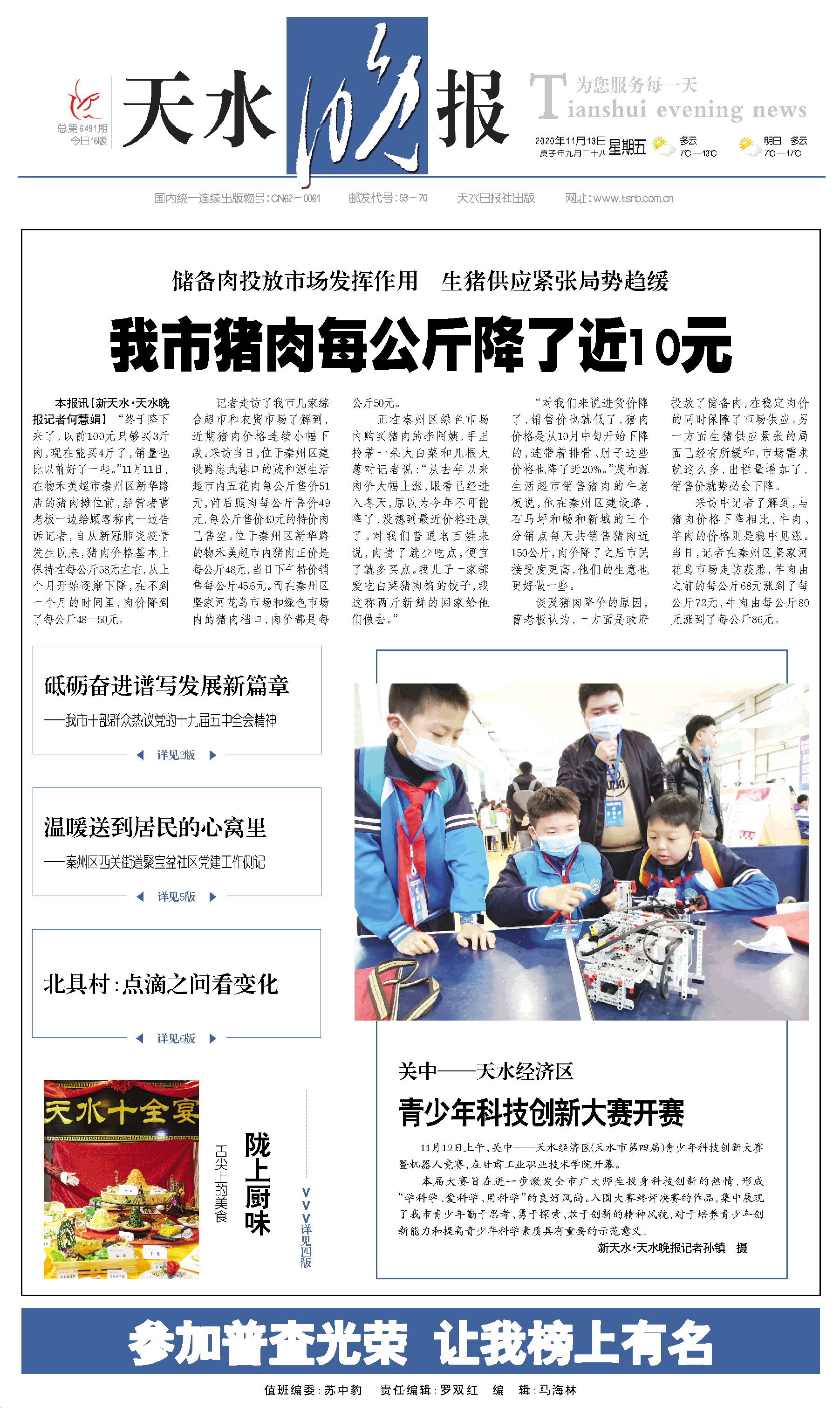 新闻 时间:2020年11月13日 来源:天水晚报