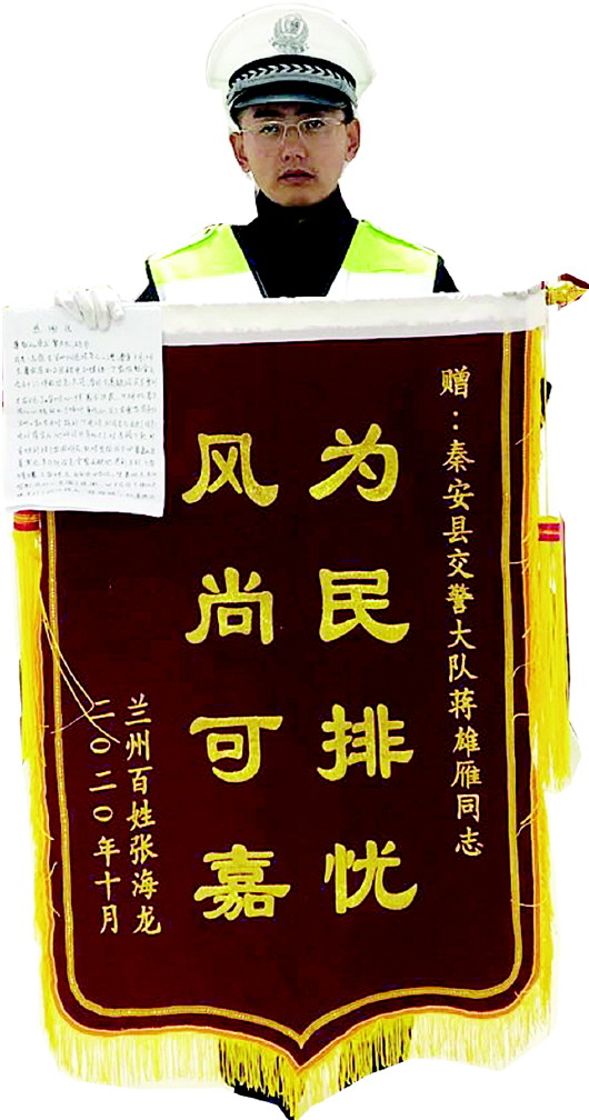 “我是一名家在兰州的退休老人,特别感谢交警同志捡到我的钱包后顶着寒风送到高铁站,不留姓名又匆匆返回……”11月5日上午,一个装有“为民排忧,风尚可嘉”锦旗和一份感谢信的快递包裹被送到了秦安县公安局交警大队,老人为何寄出这份“特殊的礼物”呢?这还要从几天前说起。