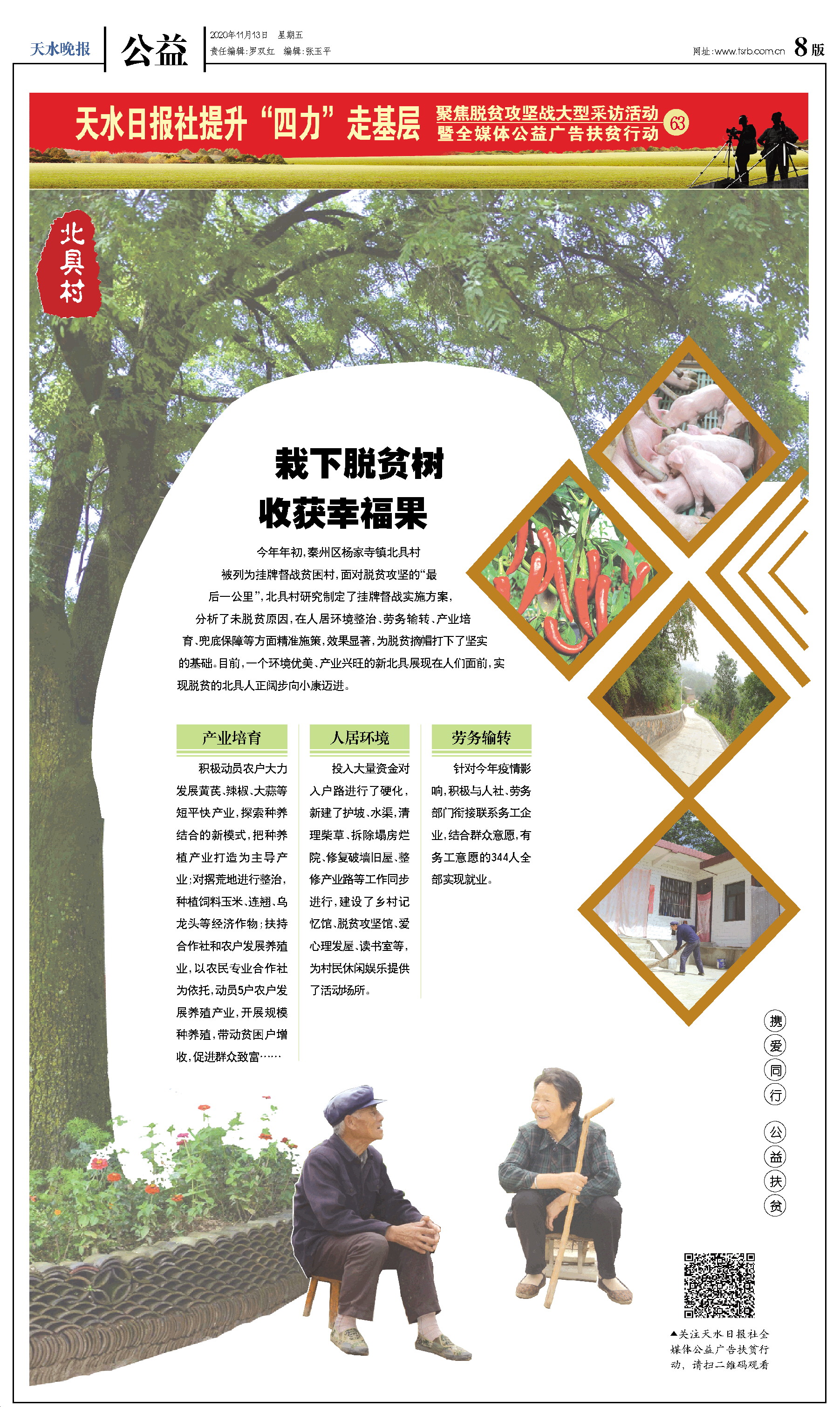 今年年初,秦州区杨家寺镇北具村被列为挂牌督战贫困村,面对脱贫攻坚的“最后一公里”,北具村研究制定了挂牌督战实施方案,分析了未脱贫原因,在人居环境整治、劳务输转、产业培育、兜底保障等方面精准施策,效果显著,为脱贫摘帽打下了坚实的基础。目前,一个环境优美、产业兴旺的新北具展现在人们面前,实现脱贫的北具人正阔步向小康迈进。