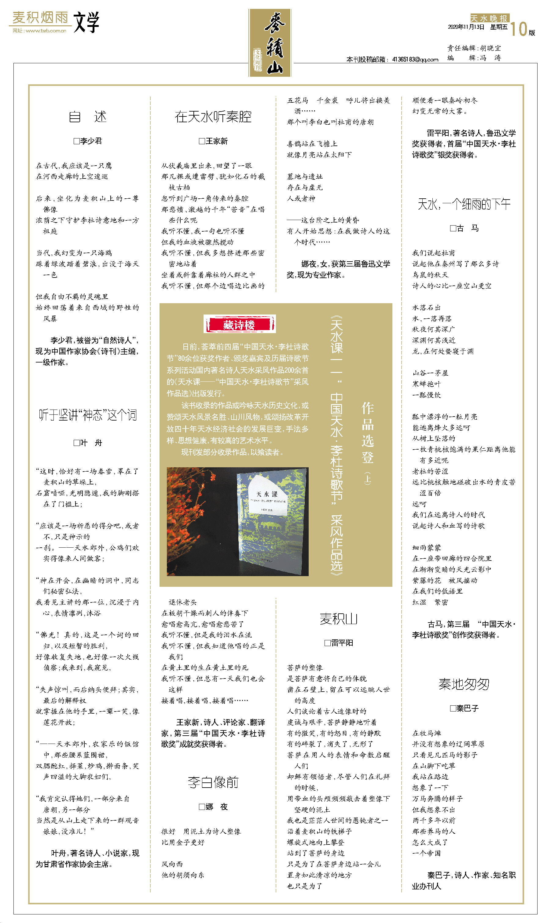 《天水课——“中国天水·李杜诗歌节”采风作品选》作品选登(上)