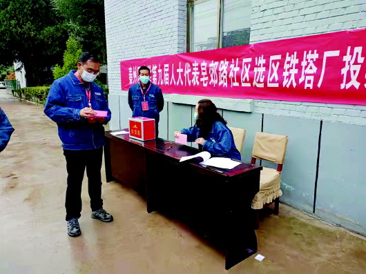 本报讯 10月20日,甘肃送变电工程有限公司机具设备分公司天水分部积极组织配合社区,开展了人大代表选举活动。 本次选举严格按照法定程序,依照法律法规,在选民登记、代表资格审查、投票程序、选举纪律等方面进行了严格要求。选举中,各班组成员按批次用选民证换取选票,填写后将选票投入票箱,行使选民的权利,为社区顺利完成选举工作,打下了坚实的基础。 (艾志强)