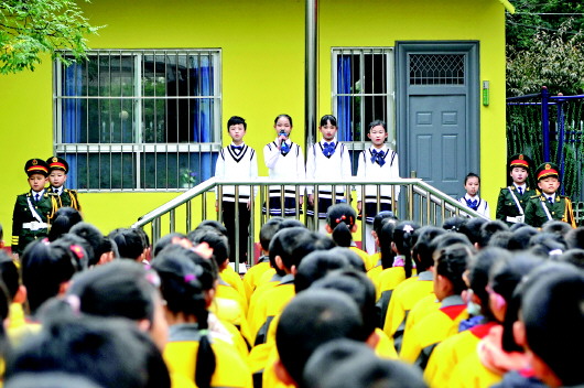 ▲小学生在国旗下演讲《文明上网 健康成长》