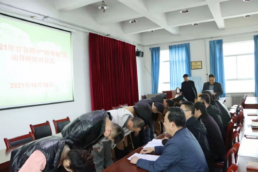 为进一步发挥骨干教师的示范引领作用,加快青年教师成长,10月19日,甘谷四中举行了隆重的“师带徒”签约仪式。该乡“师带徒”活动共有九对教师结成师徒,覆盖语文、英语、物理、化学、政治、历史等多个学科。活动共为期一年,导师指导徒弟熟悉教材教法、教案备写、课堂教学、作业批改、课外辅导、和与学生、家长交流的方式方法;徒弟在导师的帮助和指导下自主钻研教材,探索教法学法,上好研讨课和汇报课,并逐渐开始开设公开课,活动结束时要完成一篇高质量的教育论文。 王建军 摄