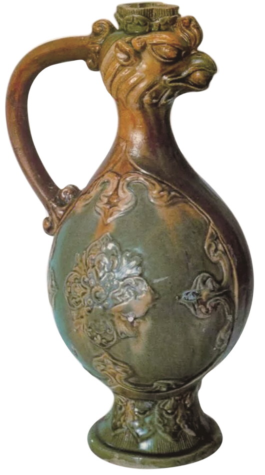 唐三彩凤首壶在东南亚、阿拉伯半岛、埃及、日本等国家和地区均有出土,在国内外博物馆还多有馆藏,这表明唐代丝路贸易的繁盛。