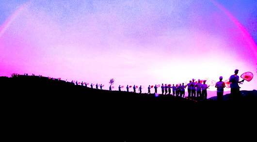 旋鼓舞表演多以村社为单位,一幡一队,进行“联旋”,对于游客来说,多是一种欣赏,徜徉之中,亲近民俗文化。而对于武山百姓而言,却是麦收前精神上的一种狂欢,是对接踵而来忙碌农事的一种准备,是对年景丰沛的一种祈福。
