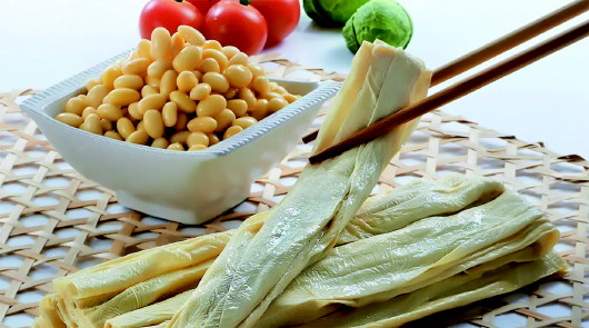 那么,腐竹制作过程这层膜是怎么形成的呢?这是由大豆蛋白不可逆变性造成的。加热时,表面蛋白质先失水变性,变性的蛋白质与脂肪结合性增强,包裹大量分散在溶液中的脂肪,形成具有一定强度的膜。所以腐竹本质上是一种蛋白质、多糖与脂肪相互作用形成的复合型可食用膜。