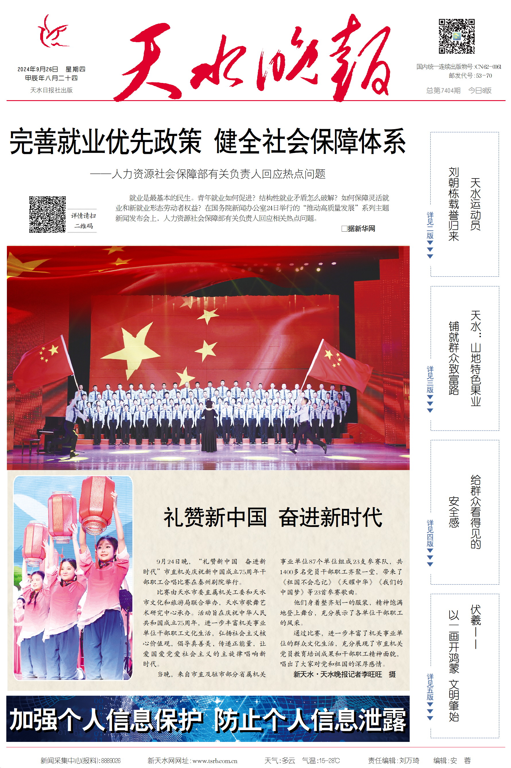 新闻 时间:2024年09月26日 来源:天水晚报