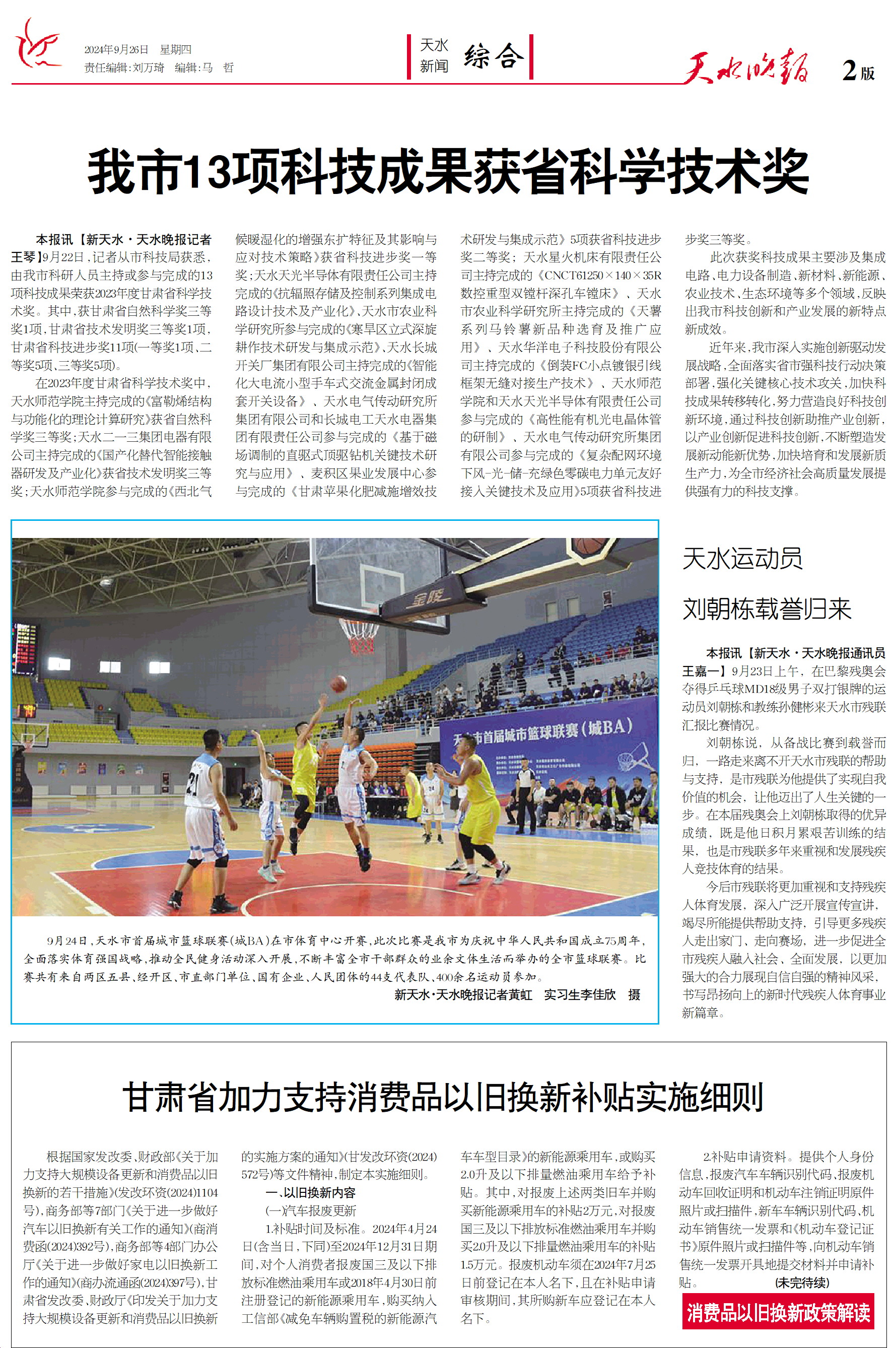 新闻 时间:2024年09月26日 来源:天水晚报