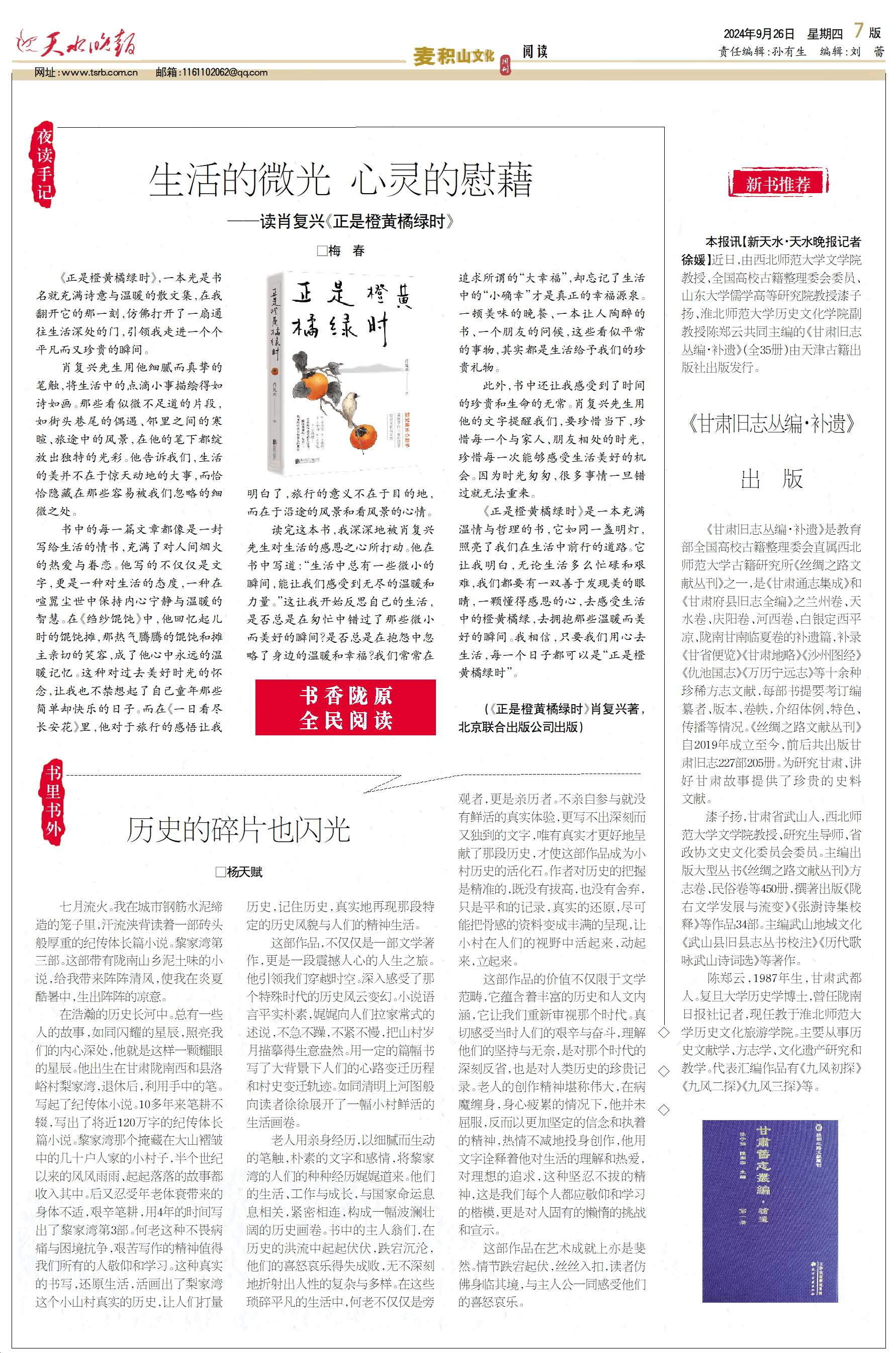新闻 时间:2024年09月26日 来源:天水晚报