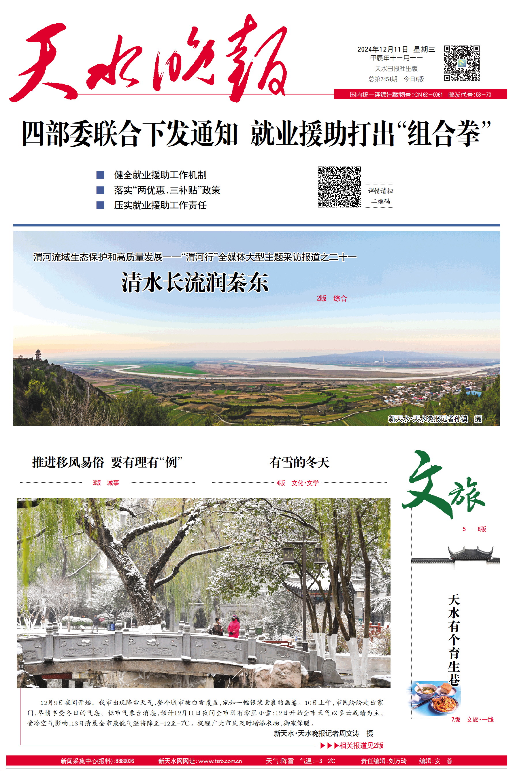 新闻采集中心(报料):8889026 新天水网网址:www.tsrb.com.cn 天气:阵雪 气温:-3—2℃ 责任编辑:刘万琦 编辑:安 蓉