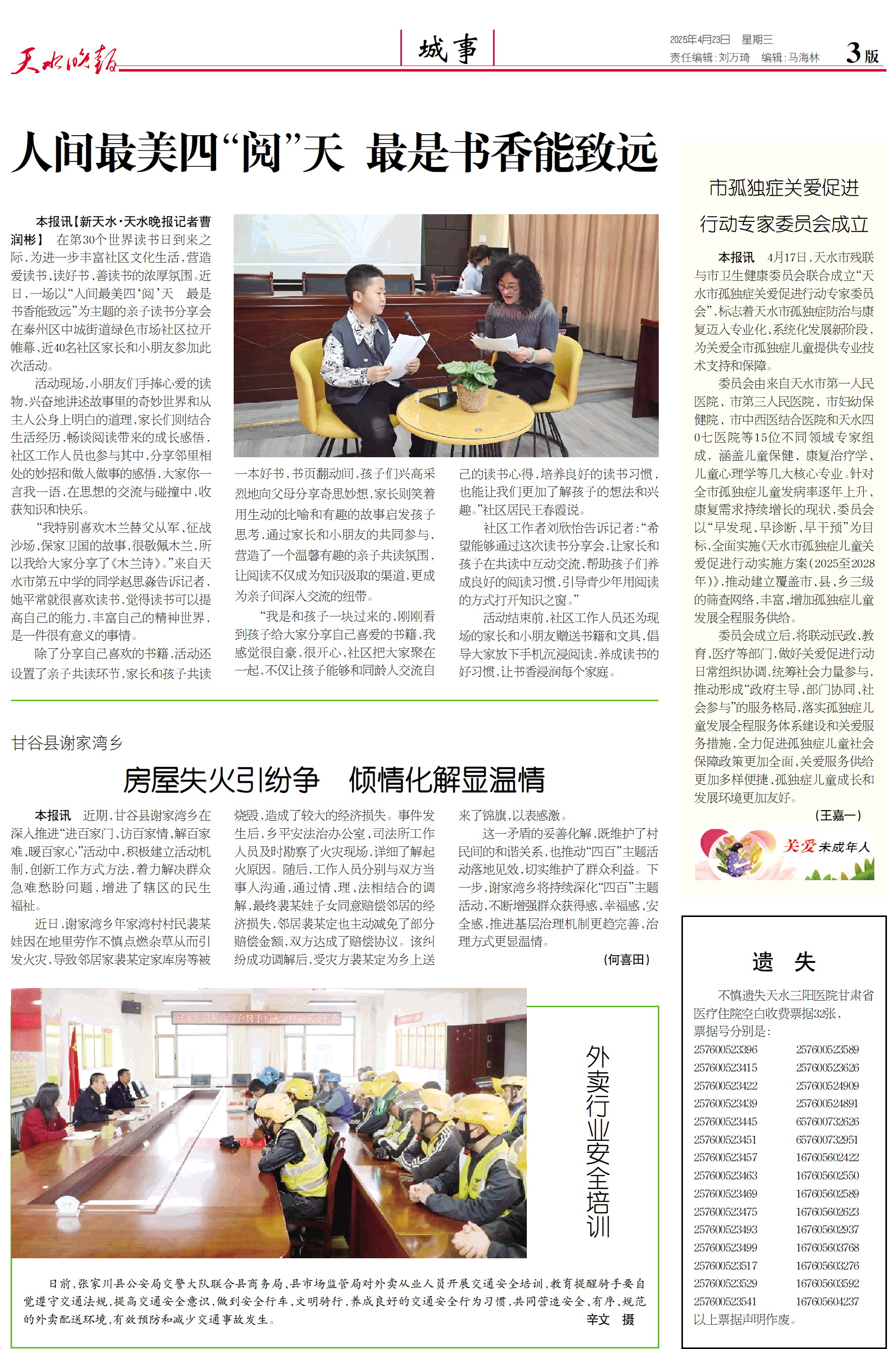 新闻 时间:2025年04月23日 来源:天水晚报