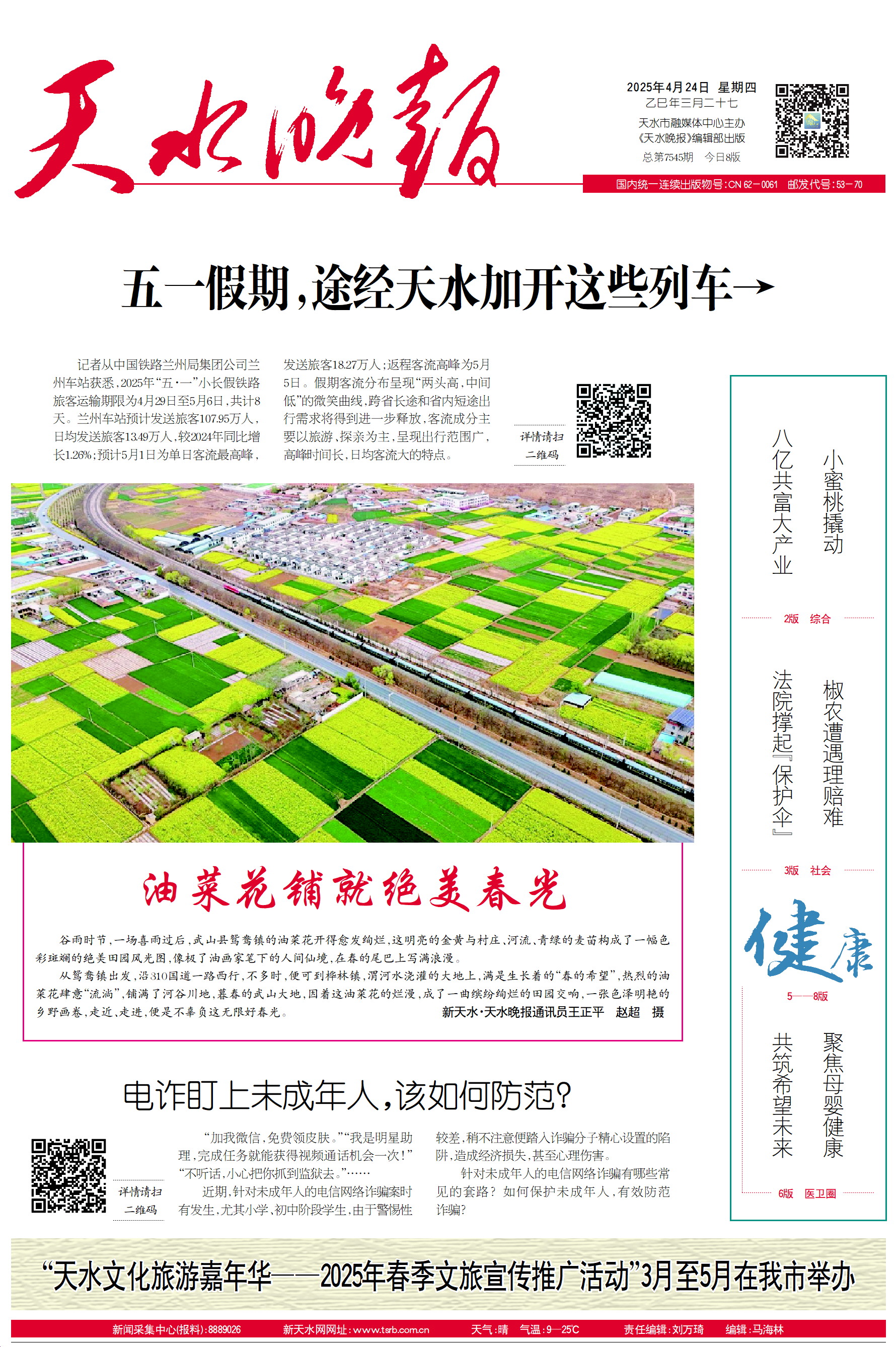 新闻 时间:2025年04月24日 来源:天水晚报