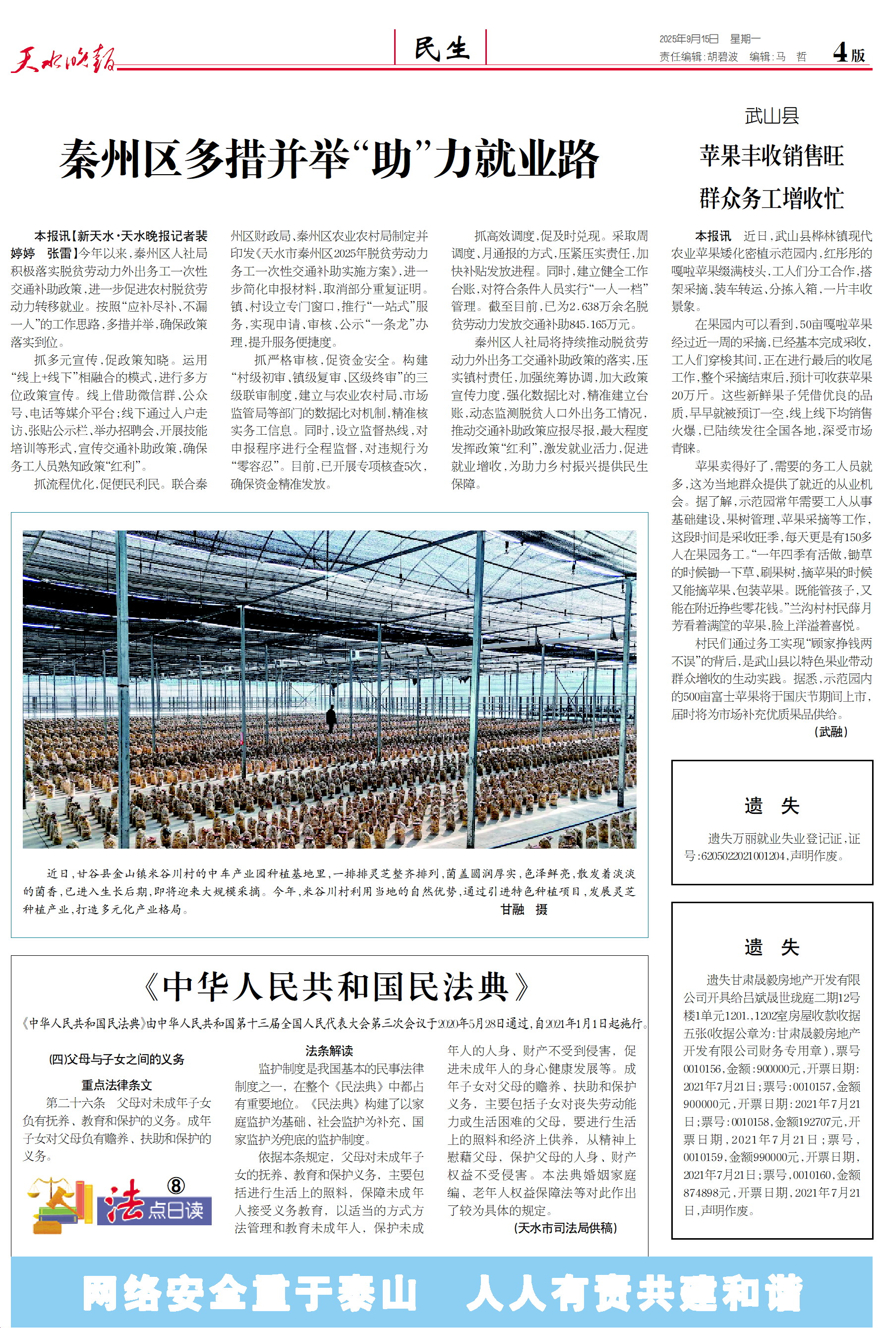 新闻 时间:2025年09月15日 来源:天水晚报