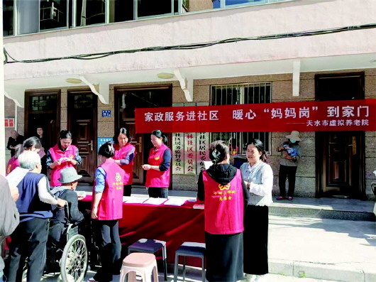 本报讯 近日,秦州区七里墩街道海林社区联合天水市虚拟养老院共同举办“居家养老惠民,妈妈岗赋能”主题活动,通过搭建“妈妈岗”供需对接平台,为社区宝妈量身打造灵活就业机会,同时为老年居民送上贴心服务。