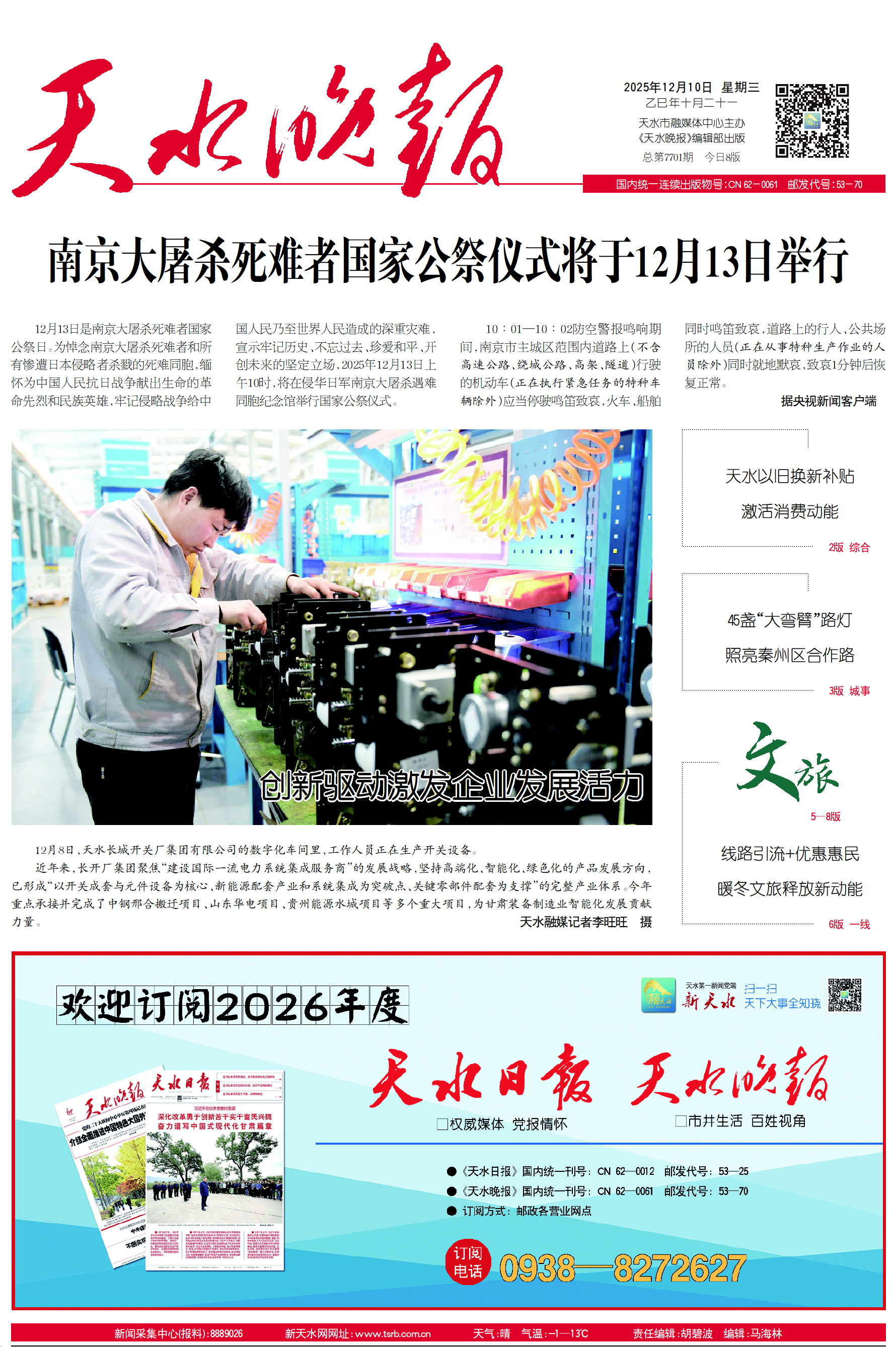 新闻 时间:2025年12月10日 来源:天水晚报