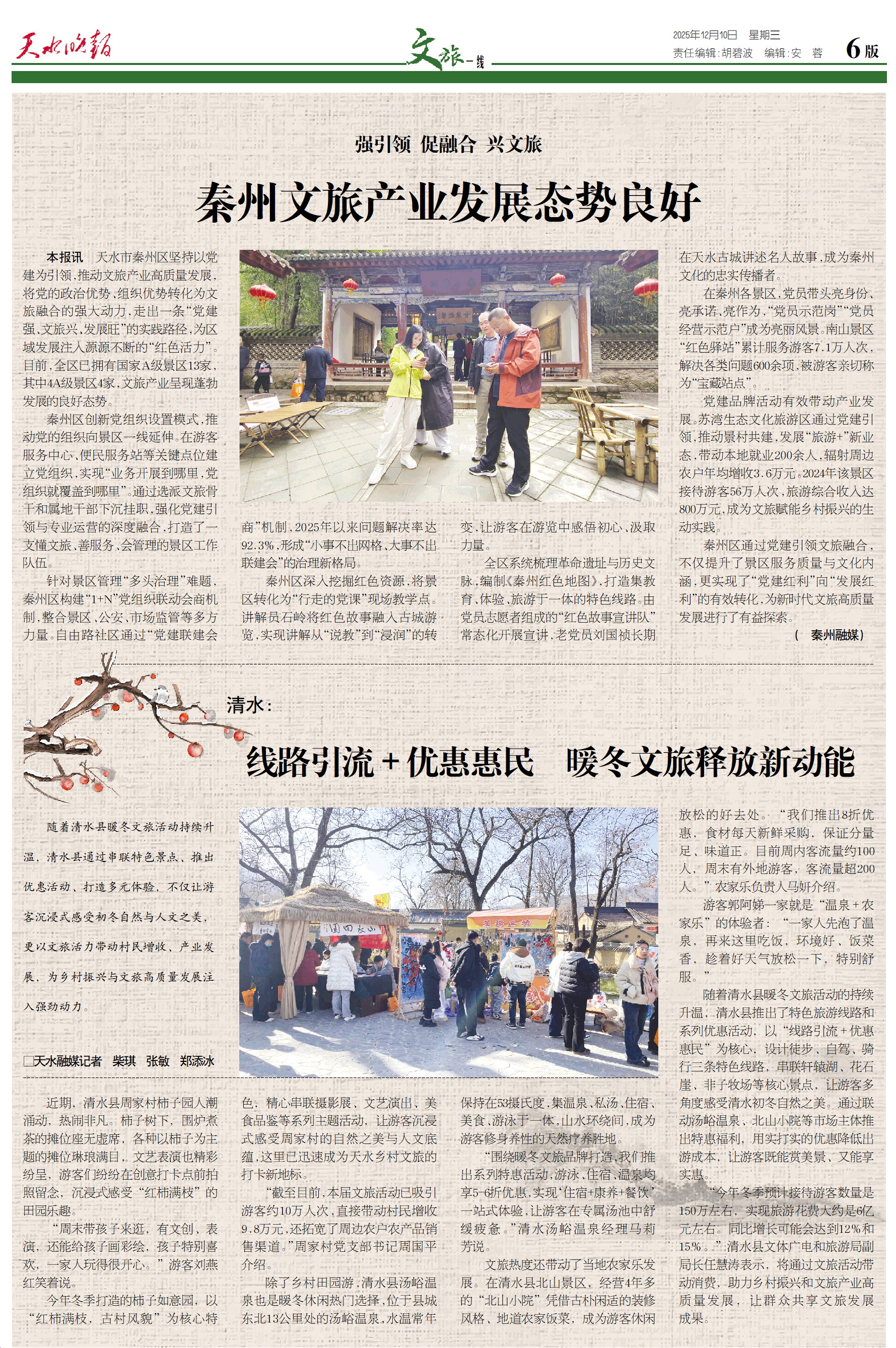 随着清水县暖冬文旅活动持续升温,清水县通过串联特色景点、推出优惠活动、打造多元体验,不仅让游客沉浸式感受初冬自然与人文之美,更以文旅活力带动村民增收、产业发展,为乡村振兴与文旅高质量发展注入强劲动力。