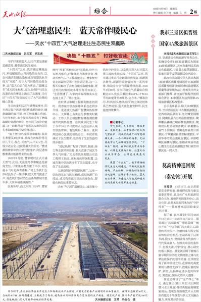 展望“十五五”,我市将持续深化生态文明建设,不断优化能源结构、产业结构,持续打好污染防治攻坚战,让绿水青山永驻、蓝天白云常伴,为建设人与自然和谐共生的美丽天水筑牢生态根基。