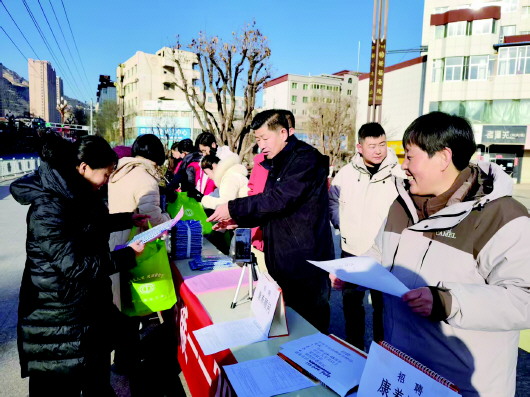 1月9日,武山县人社局联合武山县总工会、县妇联等部门及县内外重点企业共同举办“精准服务促就业 人才留武助发展”高校毕业生就业服务专项招聘会暨宣传活动。活动通过政策宣讲、专项服务、直播带岗同步发力,为高校毕业生搭建“家门口”的就业桥梁。 天水融媒记者 余碧波 摄