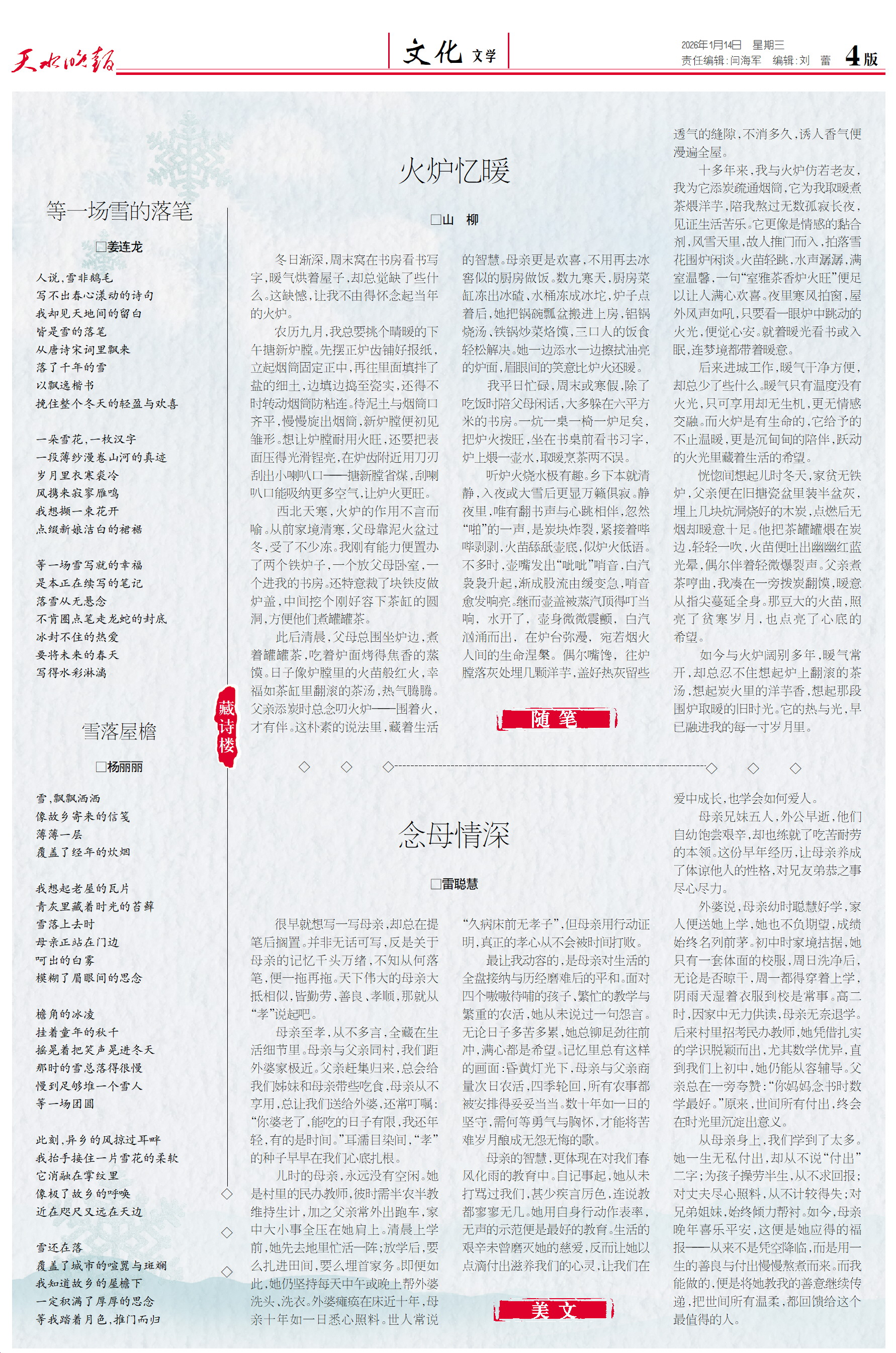 新闻 时间:2026年01月14日 来源:天水晚报